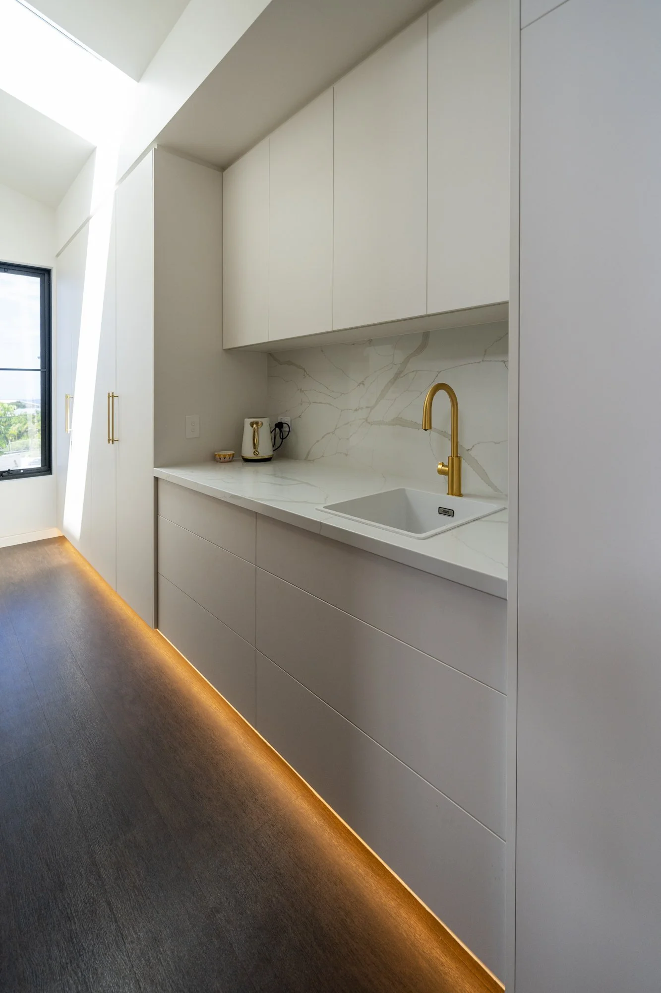 This beautiful new build was DA approved and the slab already poured, so we had the footprint and builder locked in, but the finishes were needing to be selected and the design elevated.
