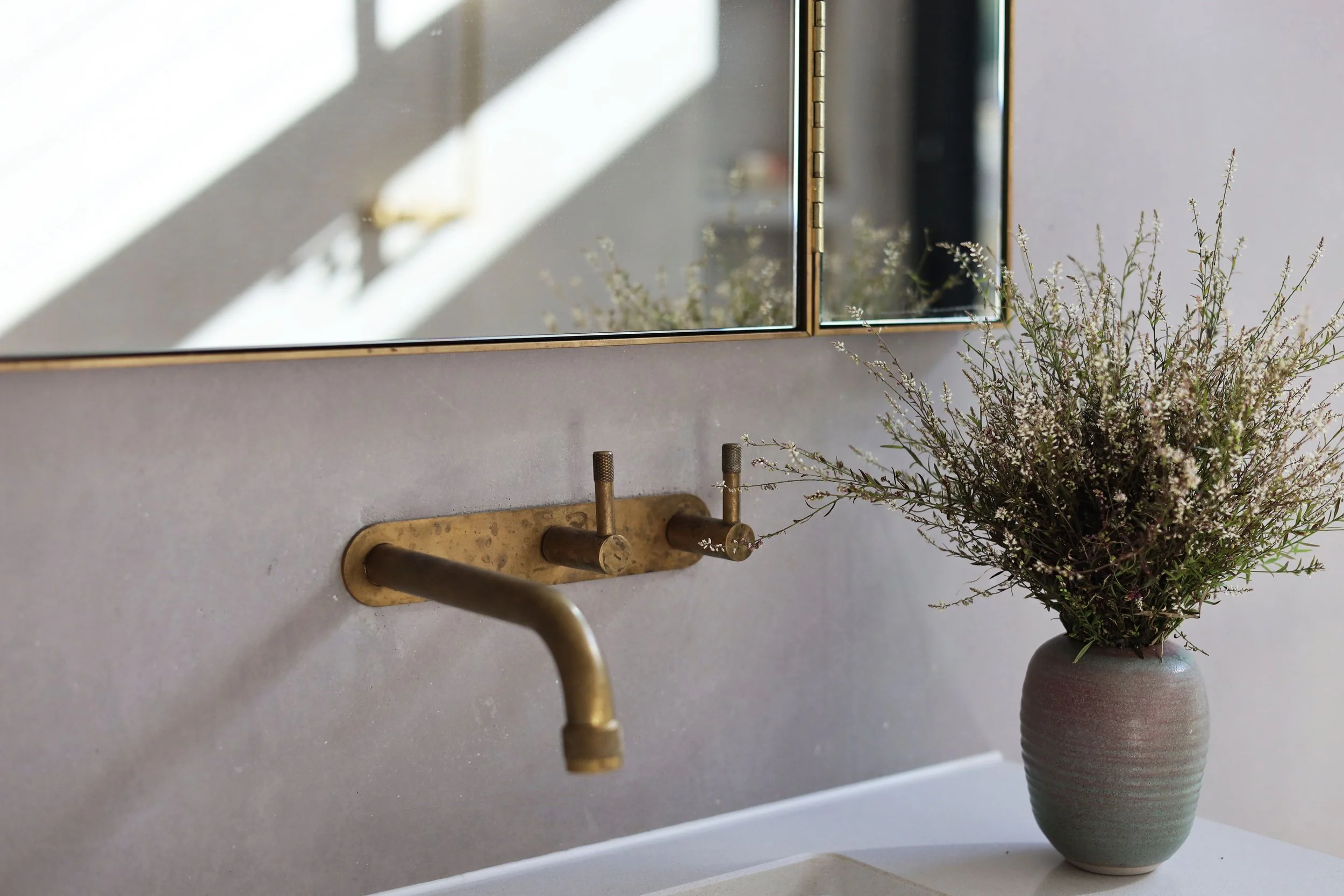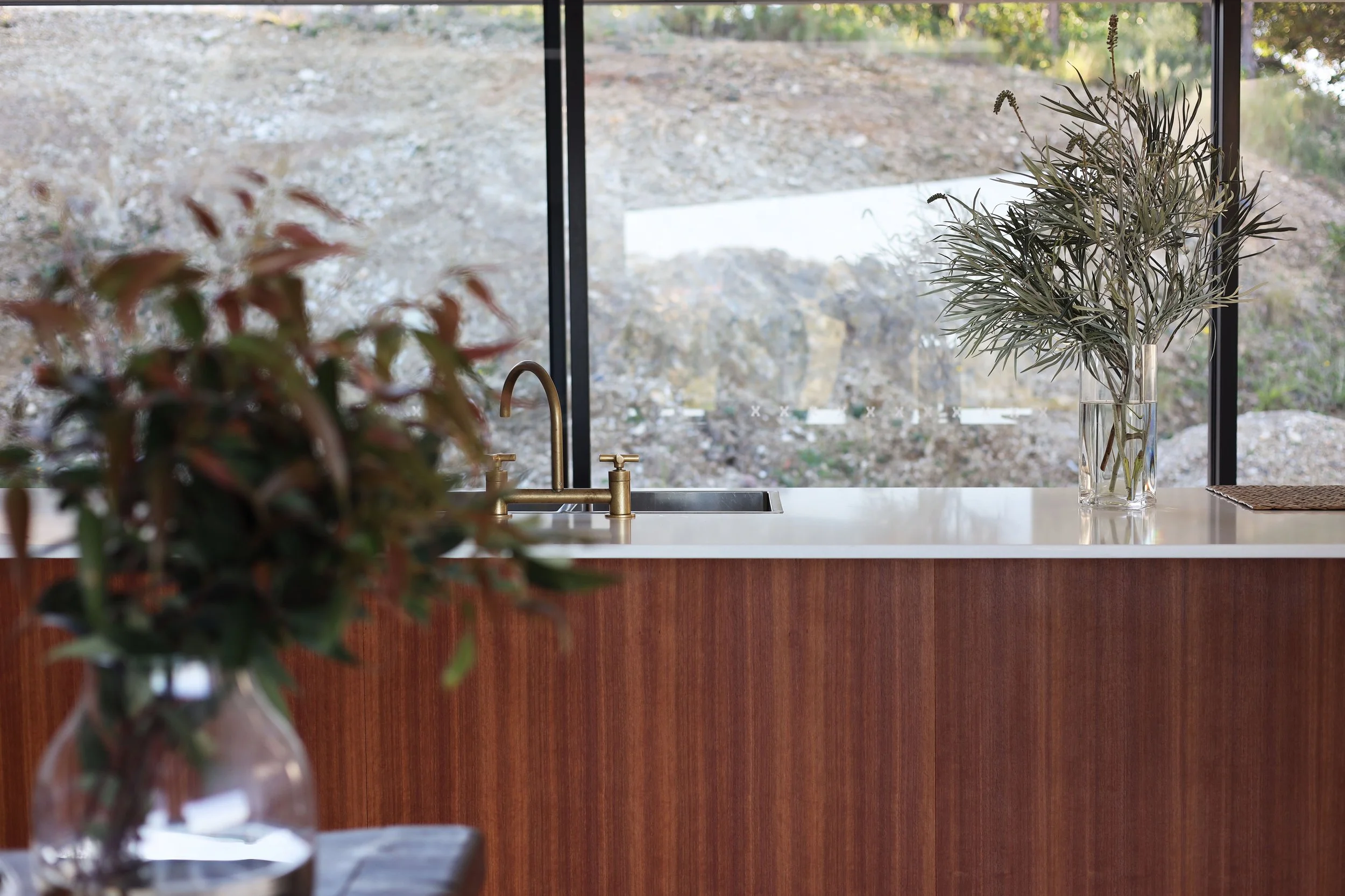 With a modest foot print, our design approach was to mix high end finishes and fittings with affordable materials. Natural stone tiles, burnished concrete, raw brass and Venetian plaster paired with soft warm white walls and local hardwood. The outcome is a beautifully orientated home, with a relaxing harmonious easy living space. Stage two will see the structural landscaping commence, with Valla granite walls, corten steel edging, native plantings and loads of happiness and laughter.