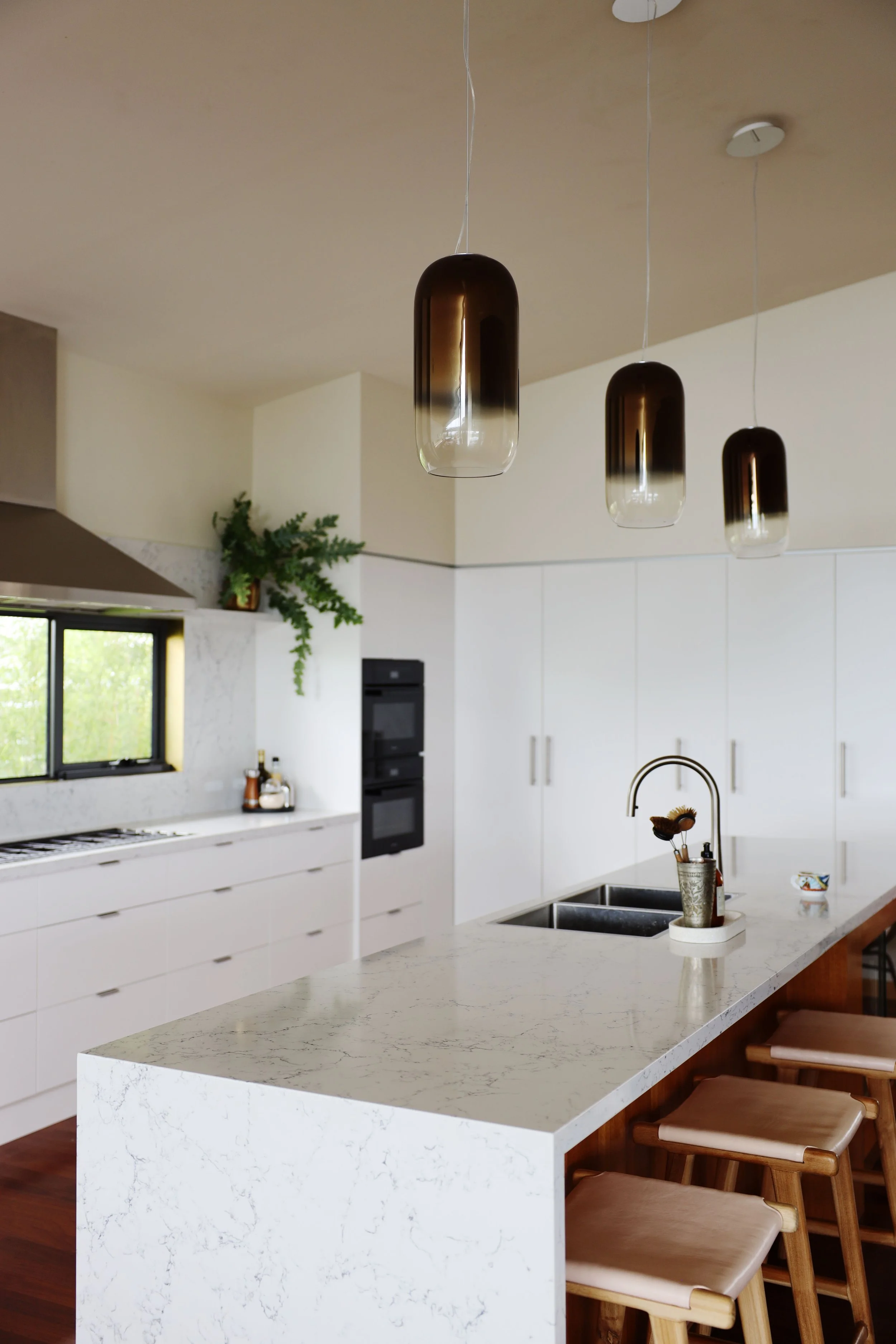 With incredible coast views comes the harsh salty sea air, and after 20 years of loving their home, our clients engaged us to help with a refresh of the kitchen, decorative lighting and new outdoor furniture.