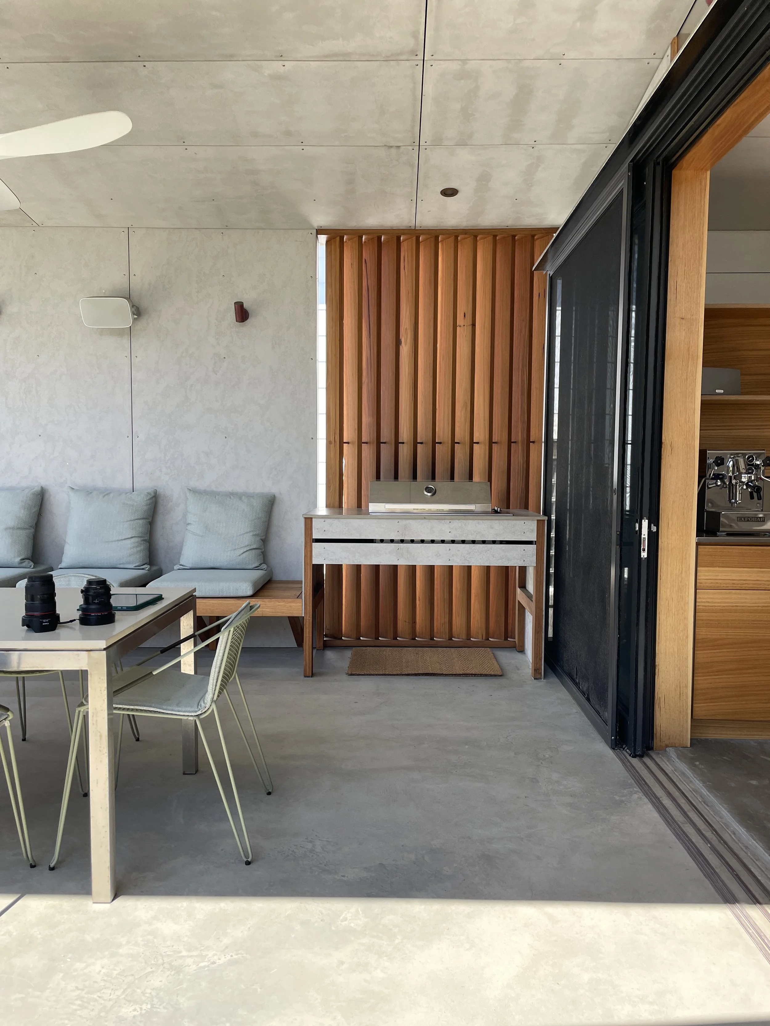 Working with Australian made and designed furniture mostly (with a few small exceptions) We had the dining table, beds and bedsides manufactured in Melbourne using Australian plantation timbers, and worked with Australian made sofa manufacturers to ensure we had items to the perfect scale and fabrication. Sourcing outdoor furniture made specifically for our harsh coastal climate.